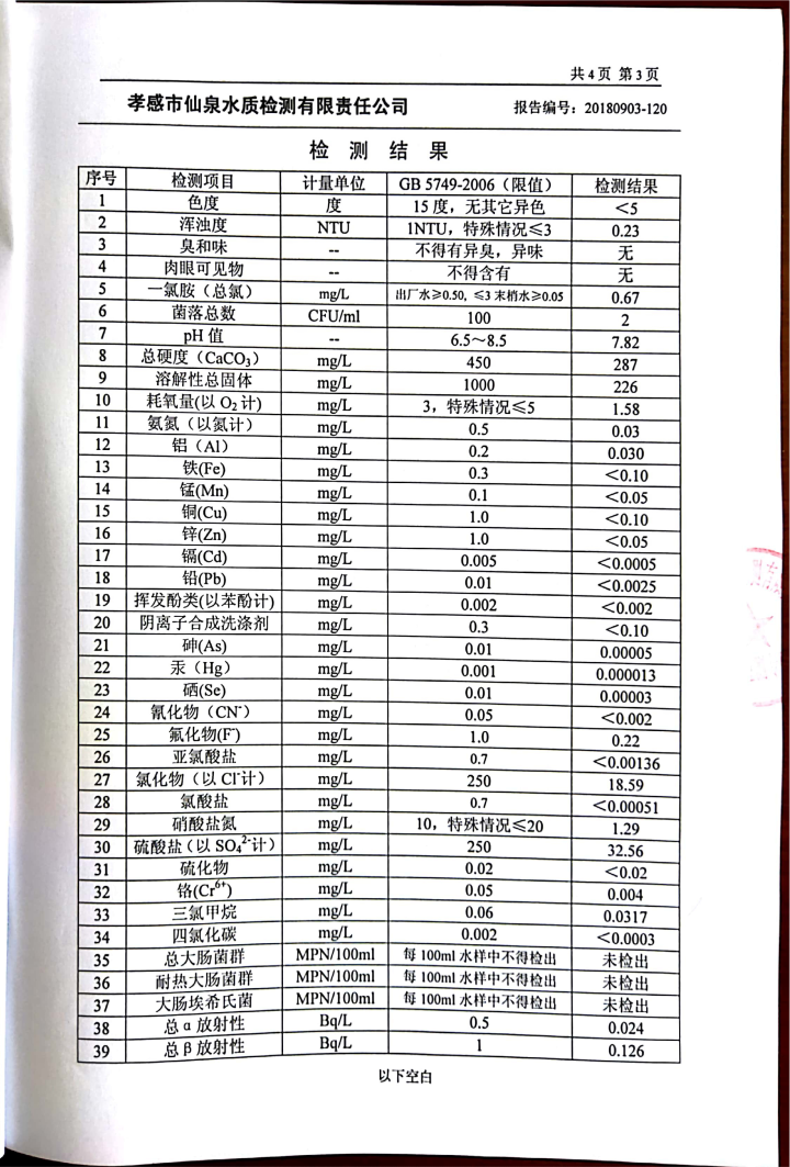 2018年9月水質報告