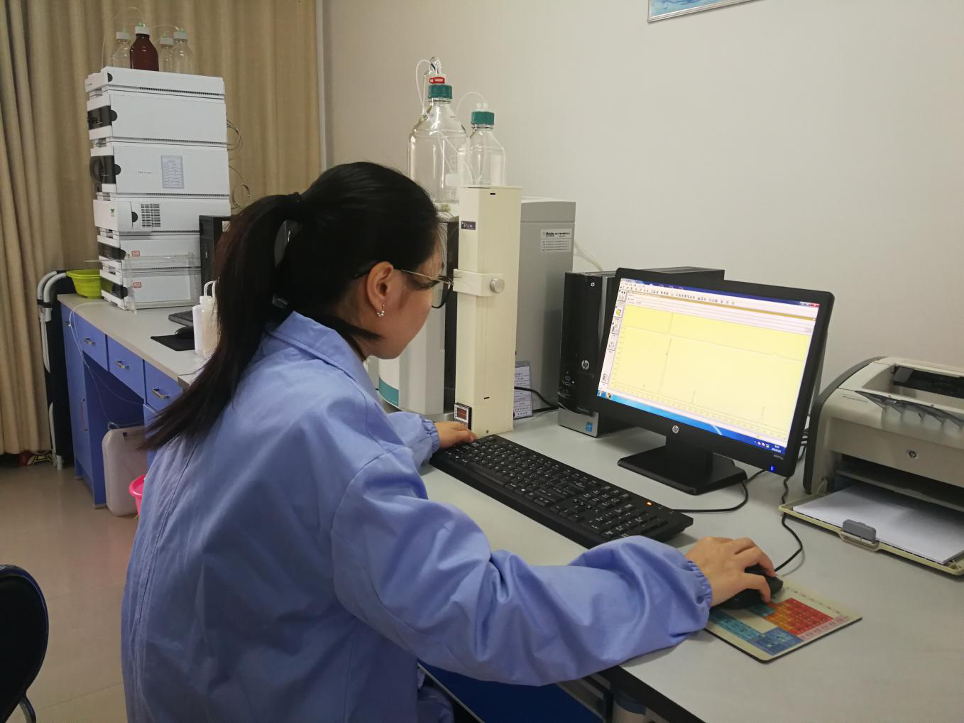 水質(zhì)檢測是安全供水的前提,更是安全供水的基礎。2015年,公司組建了仙泉水質(zhì)檢測有限責任公司,投入大量資金購買原子吸收分光光度計、原子熒光光度計、氣相色譜儀、離子色譜儀等專業(yè)儀器設備,承擔公司出廠水、源水水質(zhì)日檢、半月檢、月檢及年檢等相關(guān)水質(zhì)檢測工作。通過對水質(zhì)的濁度、PH值,余氯等指標數(shù)據(jù)監(jiān)測結(jié)果與水質(zhì)在線檢測儀比對數(shù)值,時刻掌握數(shù)據(jù)變化趨勢,加強對出廠水的常規(guī)檢測頻次,密切關(guān)注水質(zhì)變化,全力保證水質(zhì)安全。
