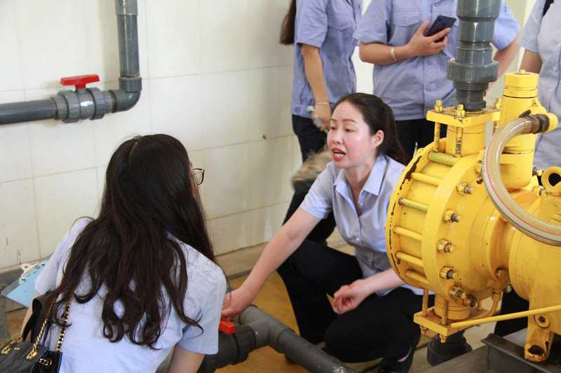 培訓(xùn)過程中,丁廠長首先向大家介紹了三水廠的基本情況和水質(zhì)安全的重要性,隨后帶領(lǐng)大家來到凈化池。通過現(xiàn)場參觀,給水廠職工講解了凈化池的工作原理及基本工藝流程。理論知識授課完畢后,丁廠長還帶領(lǐng)大家來到車間,對各種設(shè)備設(shè)施進(jìn)行了現(xiàn)場講解,并對空壓機(jī)設(shè)備導(dǎo)換、加藥泵設(shè)備導(dǎo)換進(jìn)行了實地操練 。