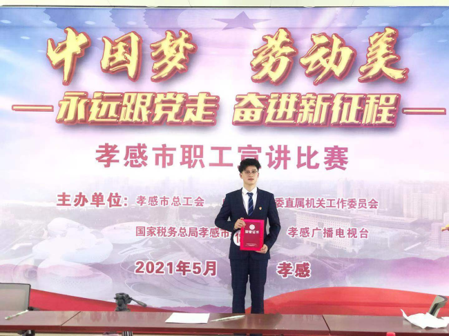 為慶祝建黨一百周年,推動(dòng)群眾性主題宣傳教育活動(dòng)走深走實(shí),5月8日,“中國(guó)夢(mèng)·勞動(dòng)美——永遠(yuǎn)跟黨走 奮進(jìn)新征程”孝感市職工宣講比賽決賽舉行,公司新員工梁航參加了此次演講比賽。